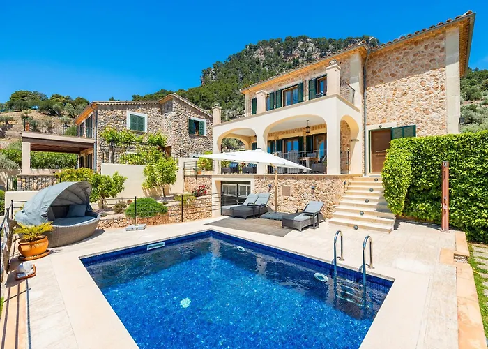 Die 3-Zimmer- Villa Sa Papaiona Valldemossa verfügt über eine Terrasse mit Aussicht auf die Berge sowie einen Swimmingpool.